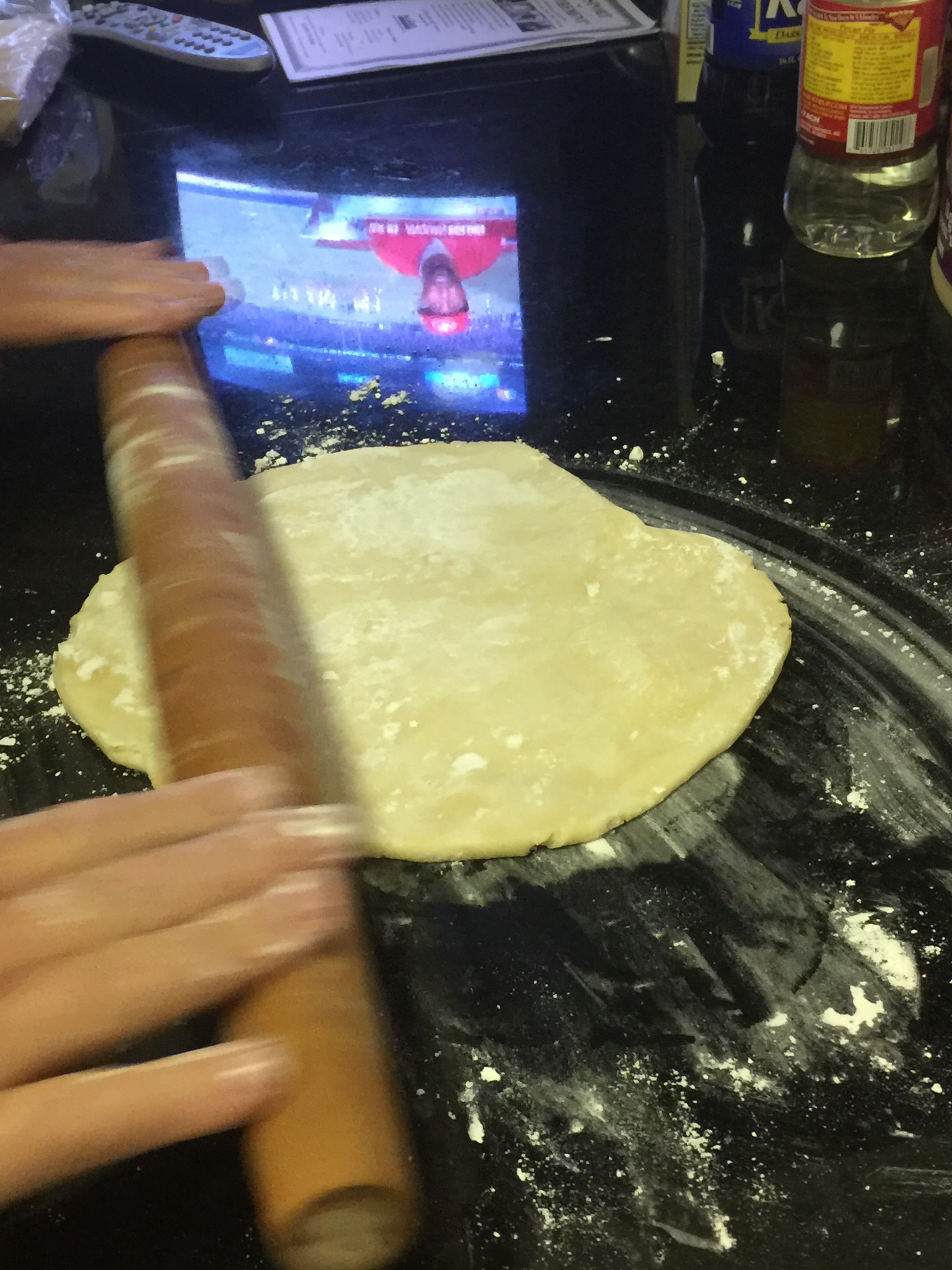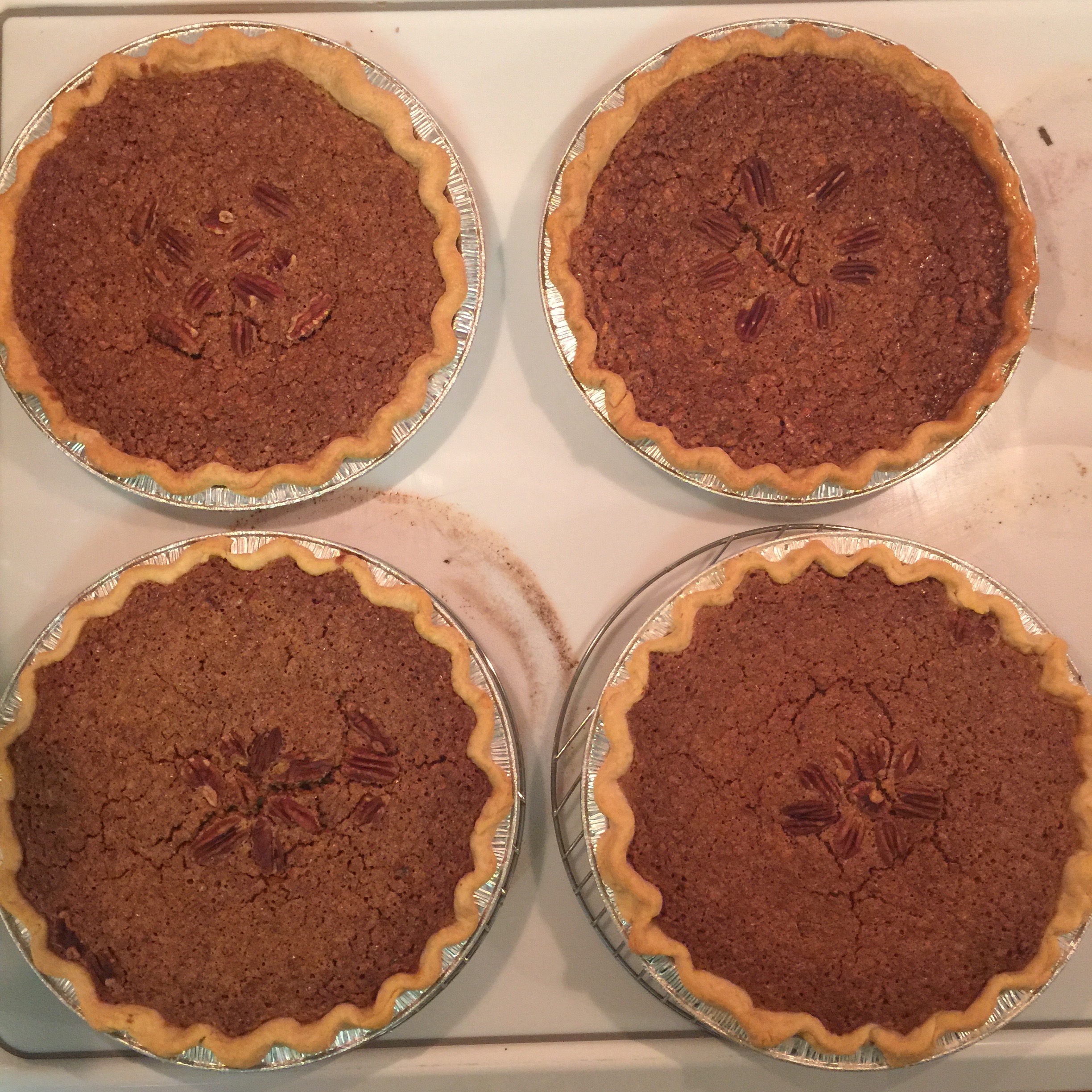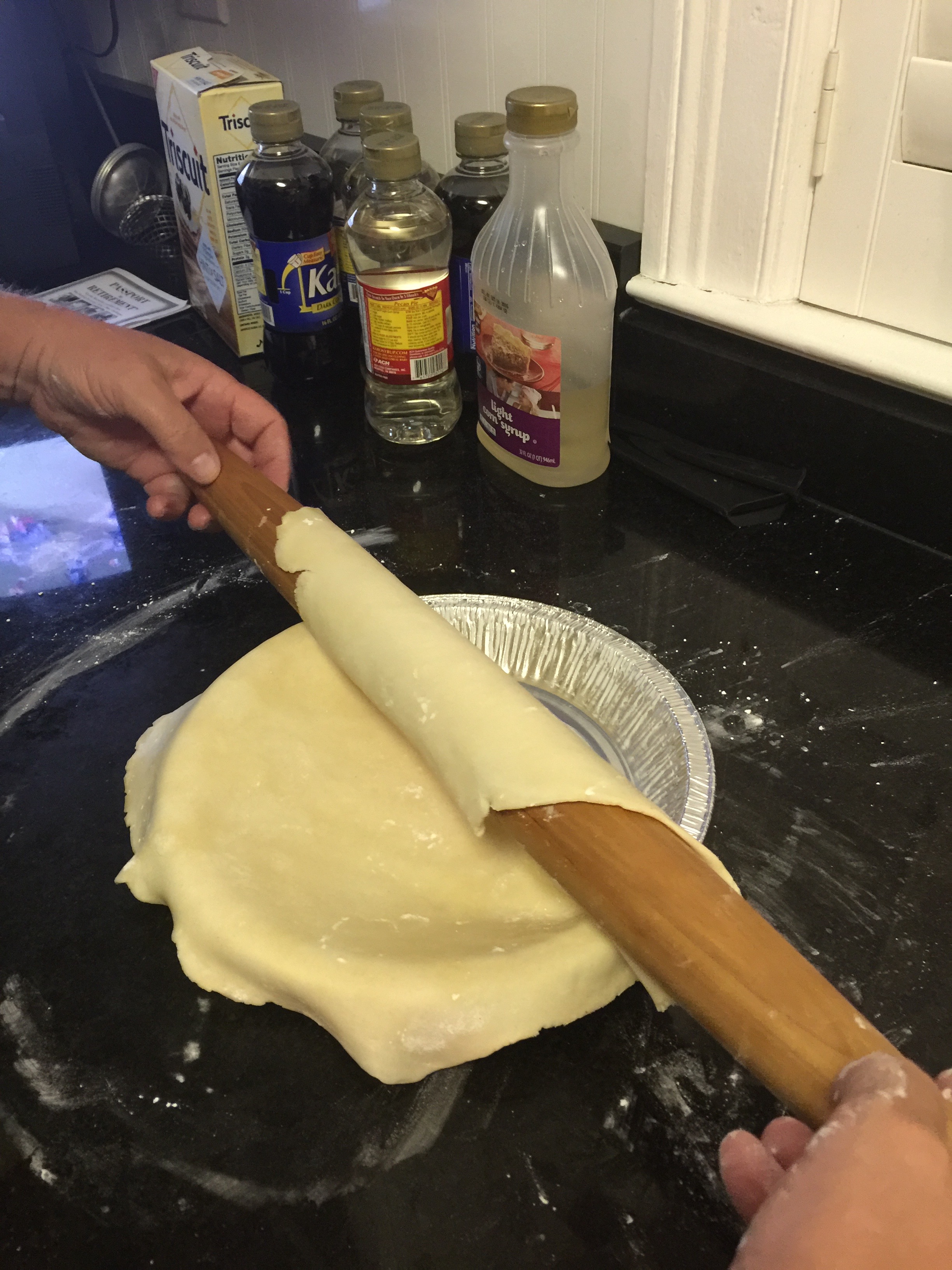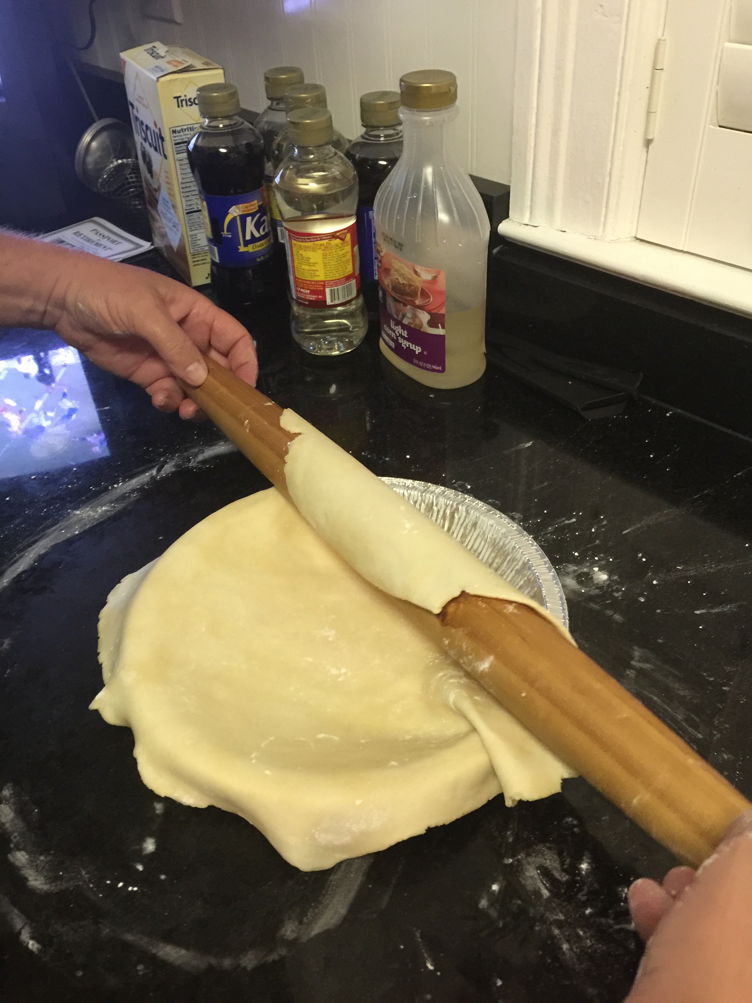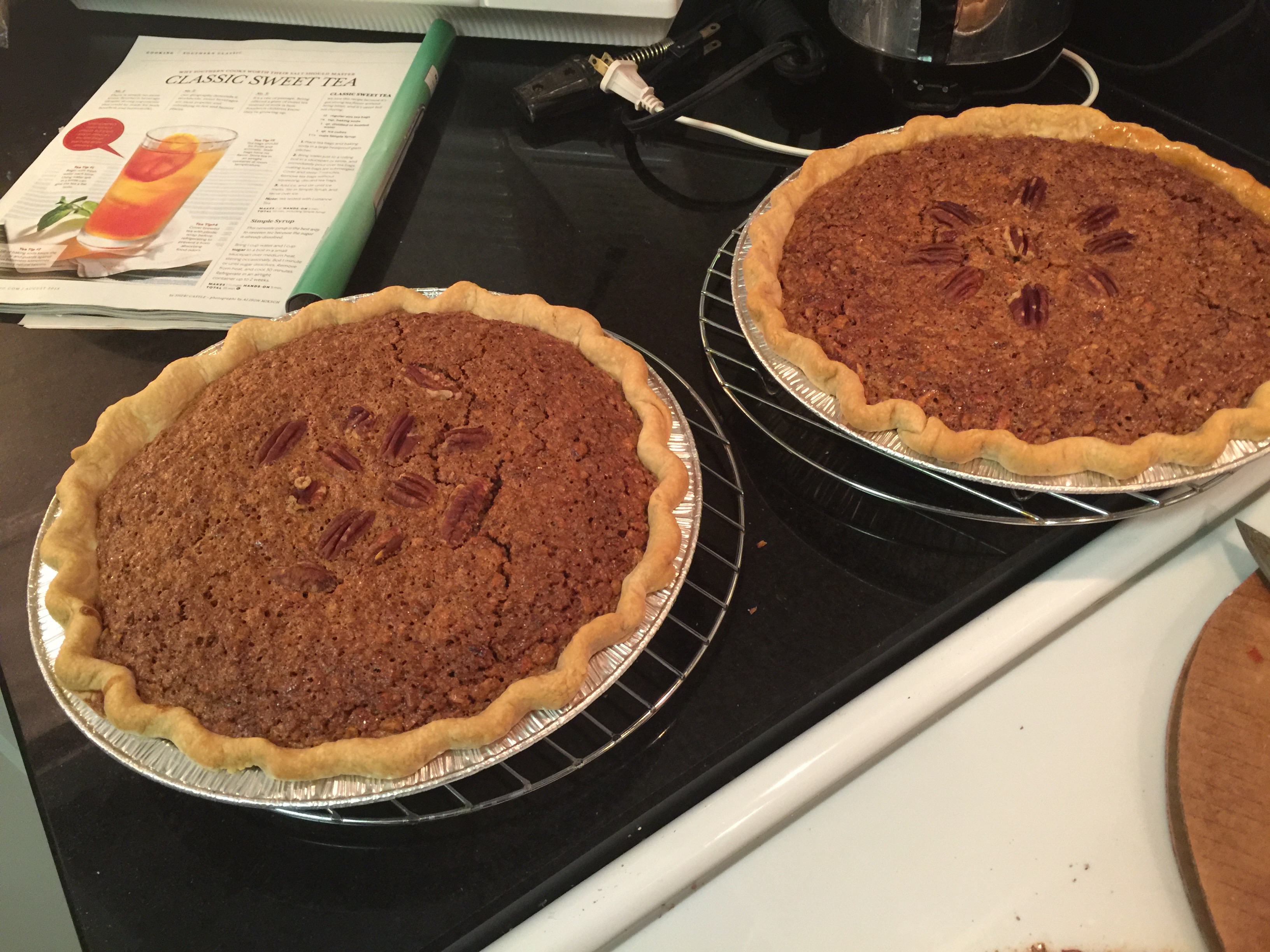 When I was at his house in South Carolina for a week in October, he decided it was high time for me to learn to make a pie crust as part of a really good pecan pie! We didn’t start small – we decided to make 7 pies to donate to the Columbia Flood Victims (five to the Downtown Church and two to WLTX for their excellent flood coverage as they worked around the clock for 10 days!)