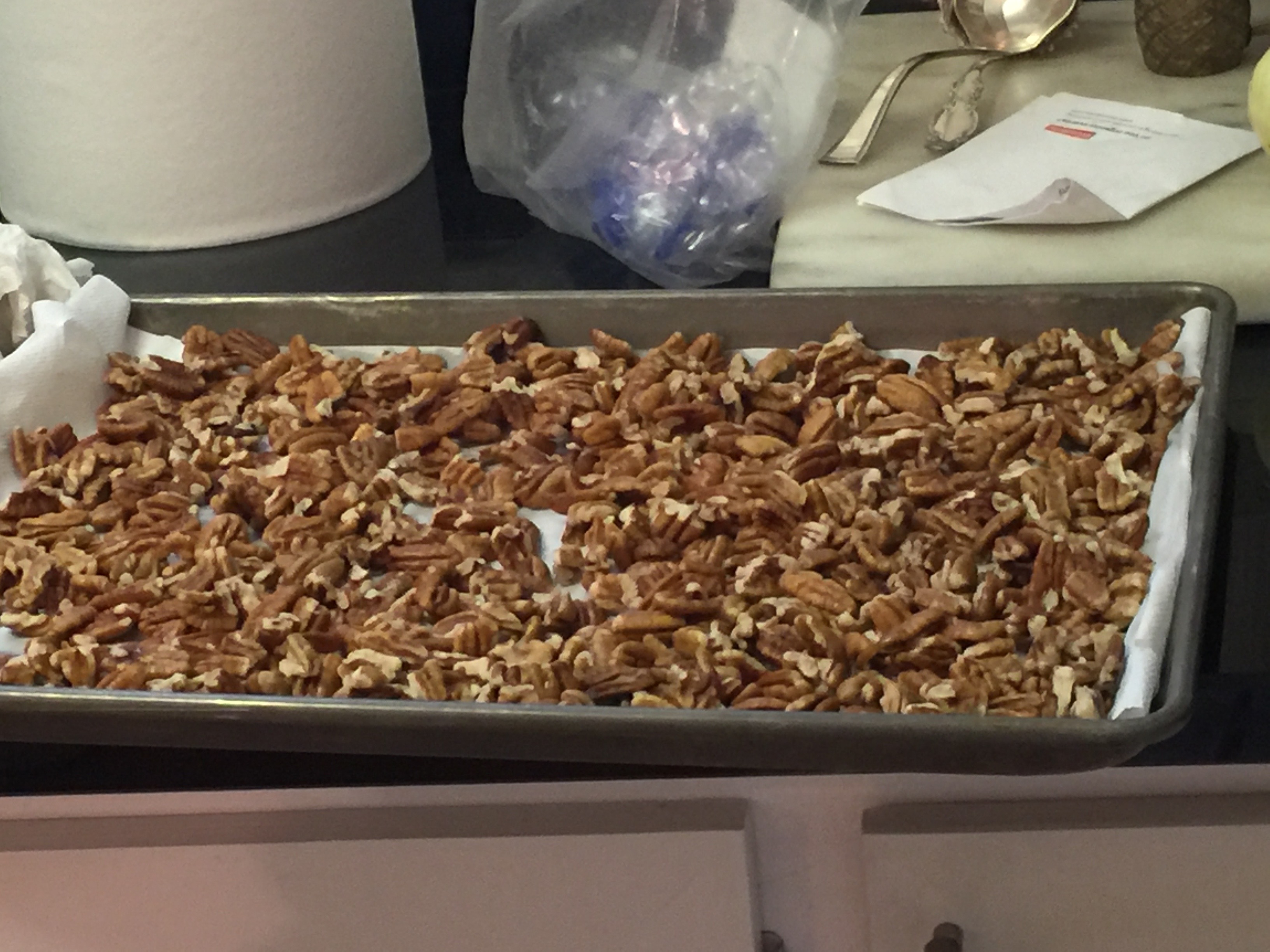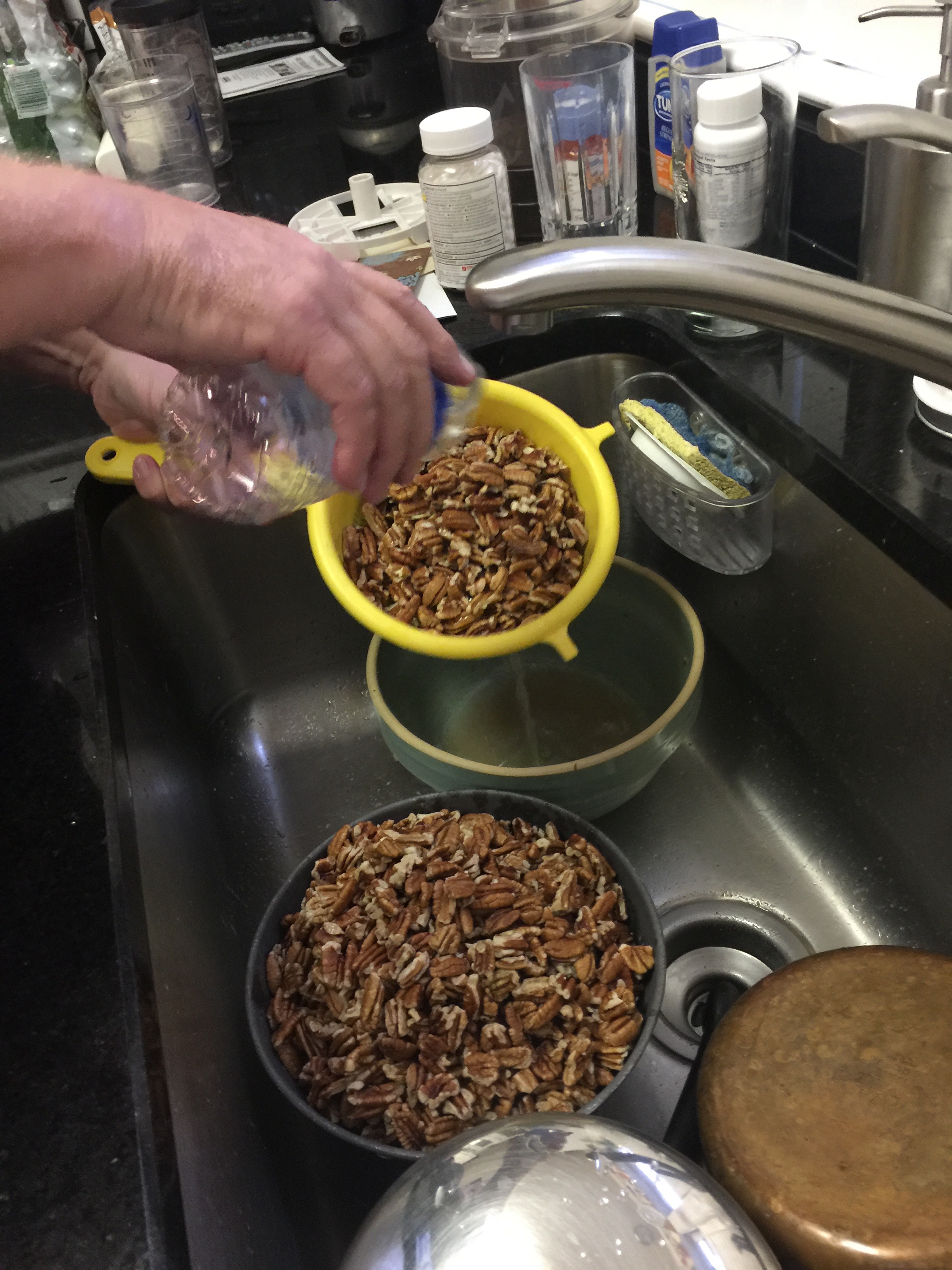 First, wash the pecans. Store bought or from a road side stand in the South – thoroughly wash the pecans with water (no soap silly!) and pat them dry.