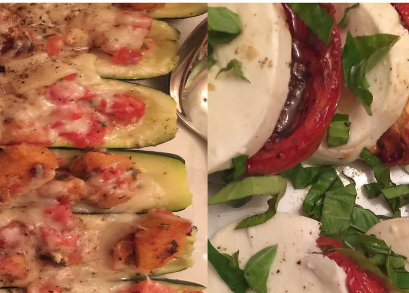 After they cool, add to the plate of roasted tomatoes, slices of fresh mozzarella cheese and some julienned fresh basil and you have yourself an easy dish that can be served any time before as an app or during the meal as a sidedish. Don’t count on leftovers – these will be gobbled up faster than M and M’s by my husband.