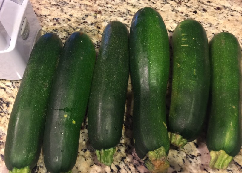 The vegetable slicer super easy to use. Let’s try it with these six zucchini’s for our Shrimp Scampi recipe. It literally takes about 3 minutes to do these 6 zucchinis!