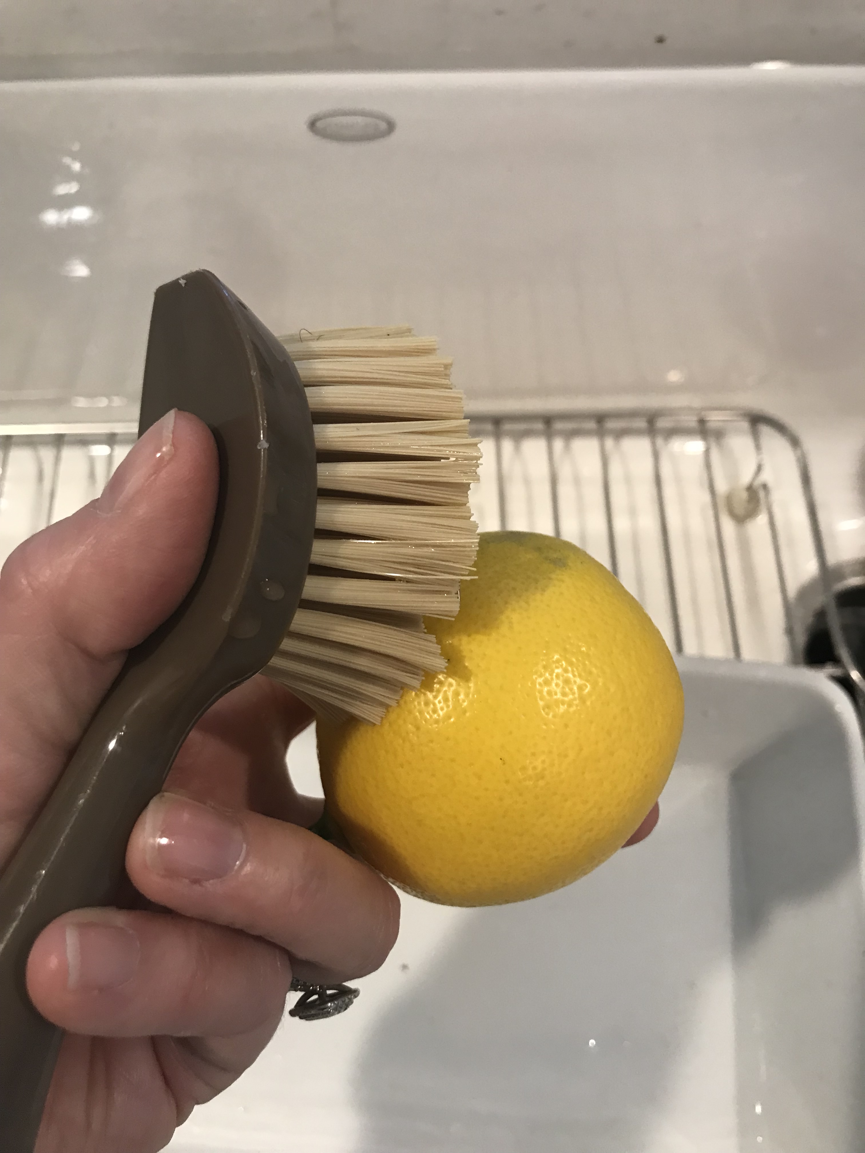 After you bring the lemons in, make sure you wash them good with a soft brush. Rinse and dry off.