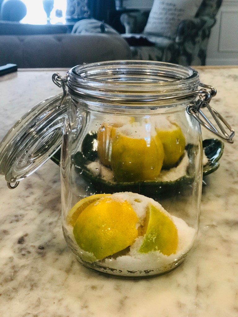 If you are like many and are tired of baking while quarantining (including eating too many brownies), consider preserving lemons. And while you are at it, make some citrus salt as well. Both are so easy and will make you look like a regular Martha Stewart next time you visit friends and bring a hostess gift (have faith – that will happen again).