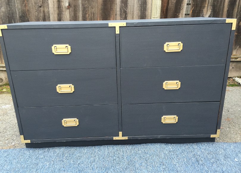 I am all about Annie Sloan Graphite Chalk Paint and gold spray paint!  The combination makes for the prettiest dressers!