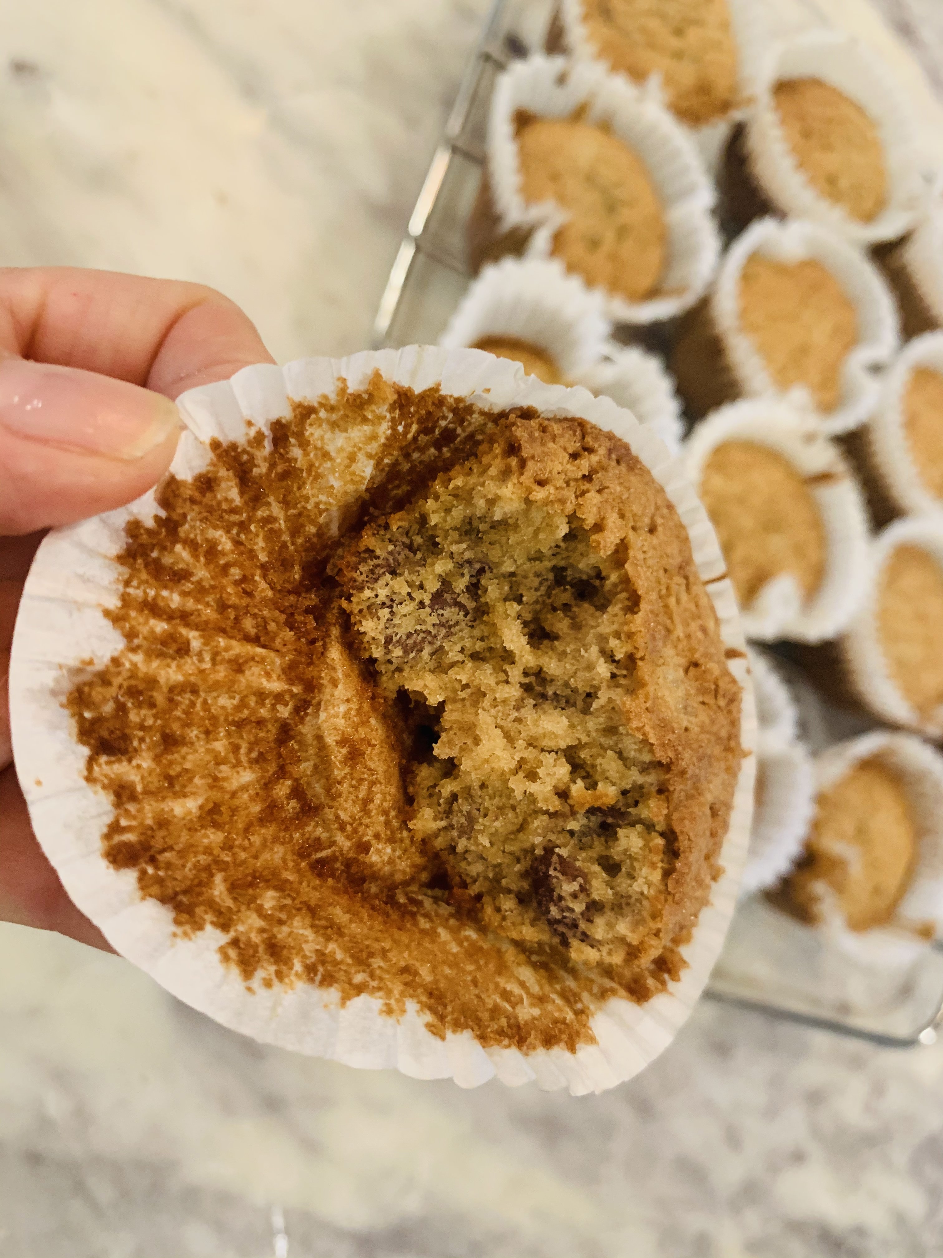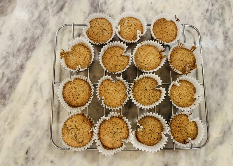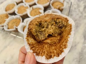 Shasta put a pecan on top of each muffin. Because my pecans were already chopped up, I passed on this. I bake for 25 minutes at 350 and they are ready to eat! I will put mine in the freezer to eat one at a time when I’m craving a huge bowl of ice cream or half a pecan pie. Until the next Zoom call in February, thanks again for the kitchen inspiration Shasta and Elle!