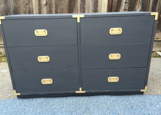 I am all about Annie Sloan Graphite Chalk Paint and gold spray paint! The combination makes for the prettiest dressers!